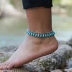 Turquoise Teardrop Bead Boho Silver Anklet